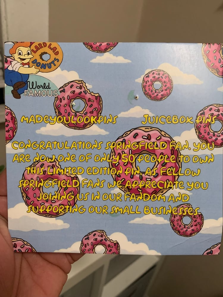 This big boy is a 5inch hard enamel pin is a numbered exclusive release only 50 pieces are made and will never come back onece they are gone they are gone perfect for any Simpson collector